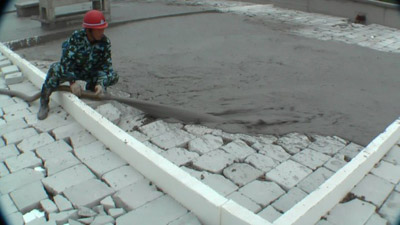 由于使用可彎曲的軟管,泡沫混凝土具有很大的工作度及適應(yīng)性,因此它經(jīng)常用于貧混凝土填層。如對(duì)隔熱性要求不很高,采用密度為1200kg/m3左右的貧混凝土填層,平均厚度為0.05m如對(duì)隔熱性要求很高,則采用密度為500kg/m3的貧混凝土填層,平均厚度為0.1-0.2m。